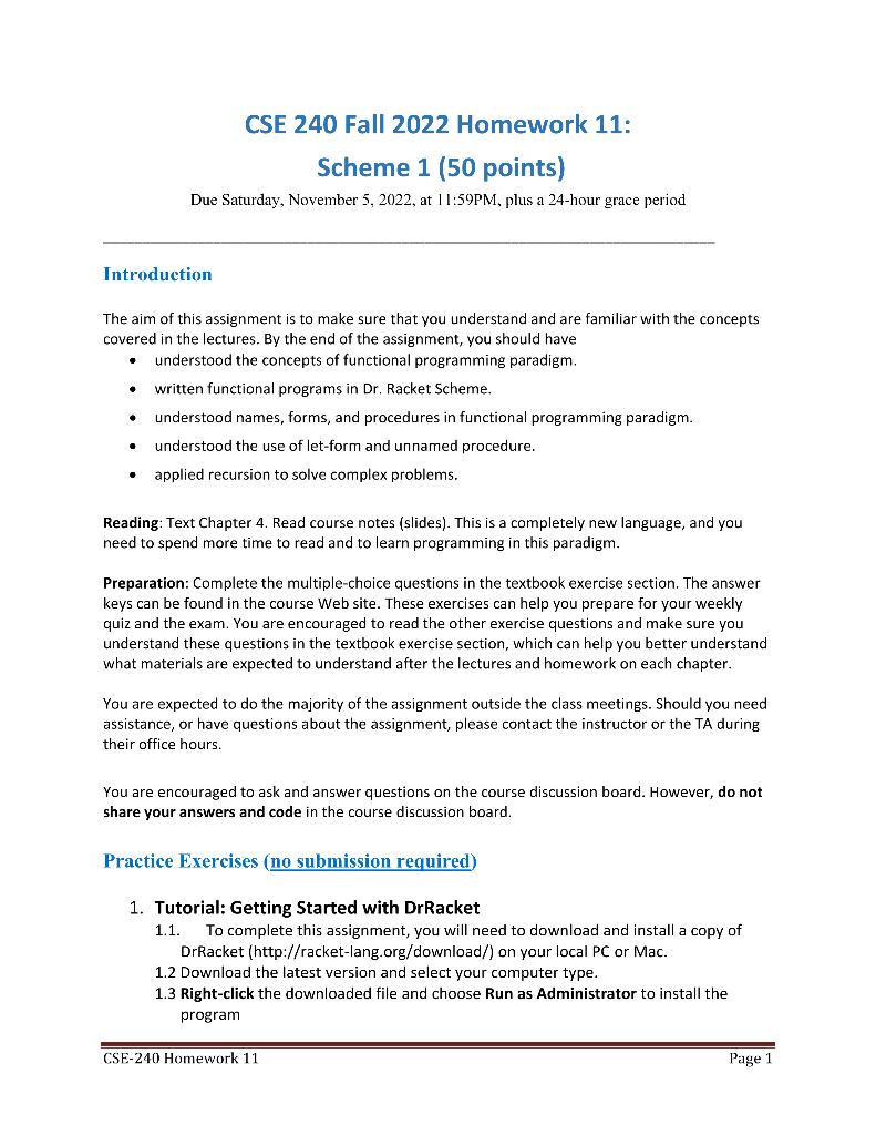 Cse 240 Fall 2022 Homework 11 Scheme 1 50 Points Chegg Com
